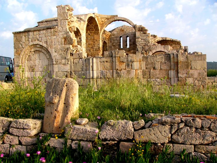 Basilika von Hagios Philon innerhalb der Ummauerung. Auf der Mauer steht noch ein verwitterter Rest eines Togatus.