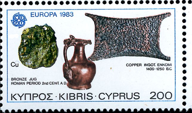 Rohkupfer, Bronzekrug (2. Jh.), Kupferblock (1400-1250 v. Chr.)