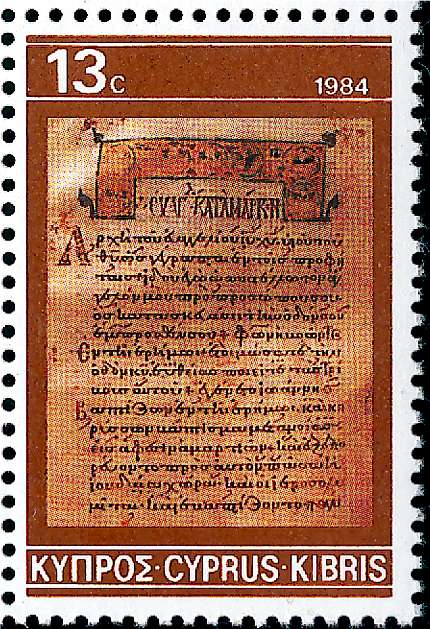 Diese Marke zu 13 cent zeigt den Anfang des Markus-Evangeliums, wobei