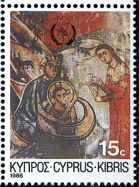 Die Briefmarke zeigt einen Ausschnitt aus dem Weihnachtsfresko