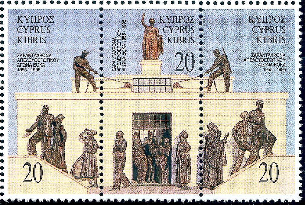 Die von G. Simonis gestaltete Briefmarke stellt das EOKA-Denkmal aus