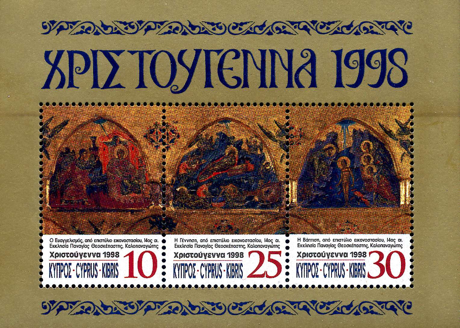 Der Weihnachtsblock von 1998 fasst die drei Weihnachtsmarken