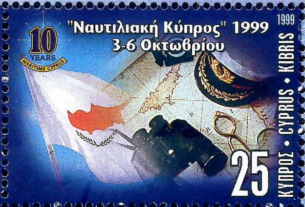 Neben dem Emblem zur 10-Jahresfeier der "Maritime Cyprus" auf