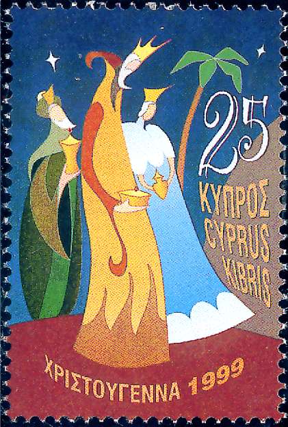 Die Marke zu 25 cent zeigt die Heiligen Drei Könige, die sich von links der