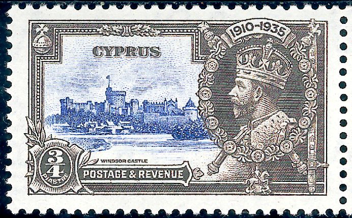 Michel-Katalog, Schloss Windsor. Rechts umgibt das gekrönte Bild des Königs