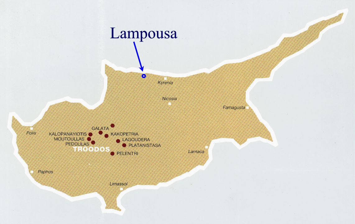 Lambousa liegt westlich von Kyrenia im heute türkisch besetzten Teil.