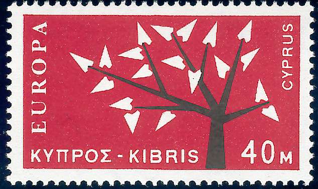 Nach den 19 Tauben des Jahres 1962 sind es jetzt 19 Blätter am (reichlich stilisierten) Baum "Europa".