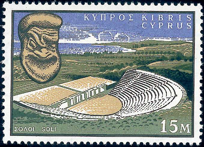Das Markenbild bietet die Ansicht des Theaters von Soloi, die auf der Mi-Nr.