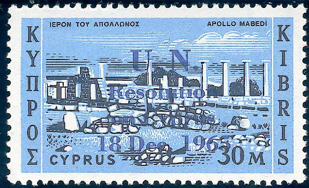 <Freimarken von 1962> mit vierzeiligem blauen Aufdruck U.N./Resolution/on Cyprus/18 Dec. 1965