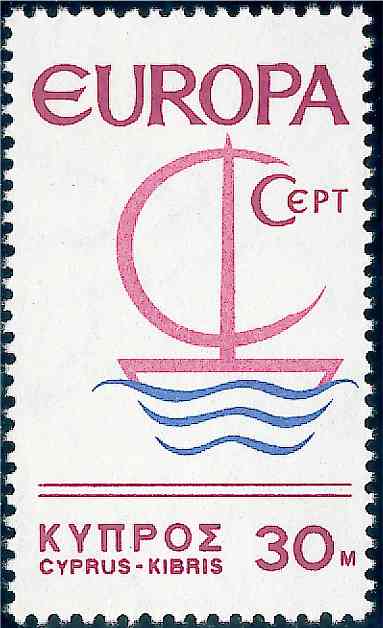 Stilisierte Darstellung mit geblähtem Segel und CEPT-Inschrift