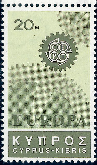 Ineinandergreifende Zahnräder, Antriebsrad mit CEPT-Emblem