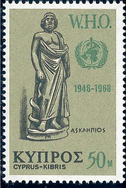Mann mit dem meist von der heiligen Schlange umwundenen Stab dargestellt.
