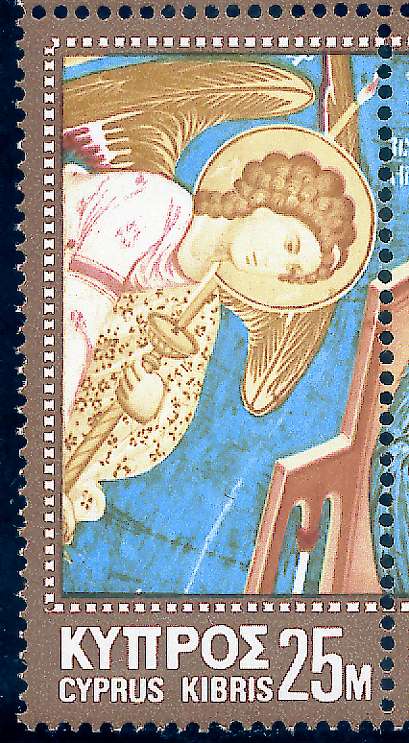 "Jungfrau Maria mit Jesuskind zwischen Erzengeln Michael und Gabriel", Wandgemälde in der Kirche Panayia tis Podithou, Galata (16. Jh.)
