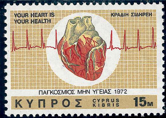"Dein Herz ist deine Gesundheit." Rechts wird auf griechisch ein