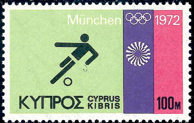Olympischen Spiele, hier ein Fußballspieler, darüber die Inschrift "München"