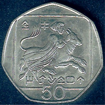 "Central Bank of Cyprus" auf der (2004) aktuellen 50-cent-Münze: