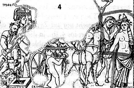 Gegenstände trägt, die für die Mysterien notwendig sind. Vor Tropheus