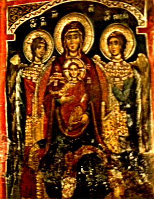 die Mutter Gottes, der linke Minister der Erzengel Michael, der rechts stehende der Erzengel Gabriel. Genau diese Szene ist